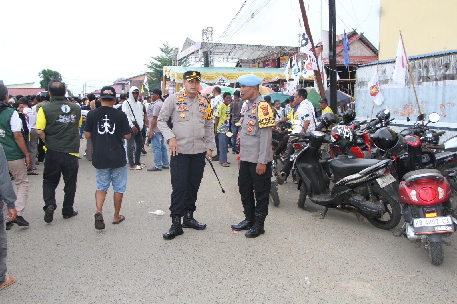Ketapang, Brigadenews.co.id – Polda kalbar, Kapolres Ketapang, AKBP Setiadi, S.H., S.I.K., M.H., turun langsung memimpin pengamanan kegiatan kampanye rapat terbuka pasangan calon (paslon) 01 dan paslon 03 yang berlangsung di dua lokasi berbeda yaitu di lapangan Tanjungpura Jalan Basuki Rahmat Kecamatan Delta Pawan dan Lapangan Sepakat Jalan Sisingamangaraja Kecamatan Delta Pawan Kabupaten Ketapang, pada sabtu sore (23/11/2024). Rapat kampanye terbuka ini merupakan bagian dari rangkaian tahapan Pemilukada 2024 di Kabupaten Ketapang.