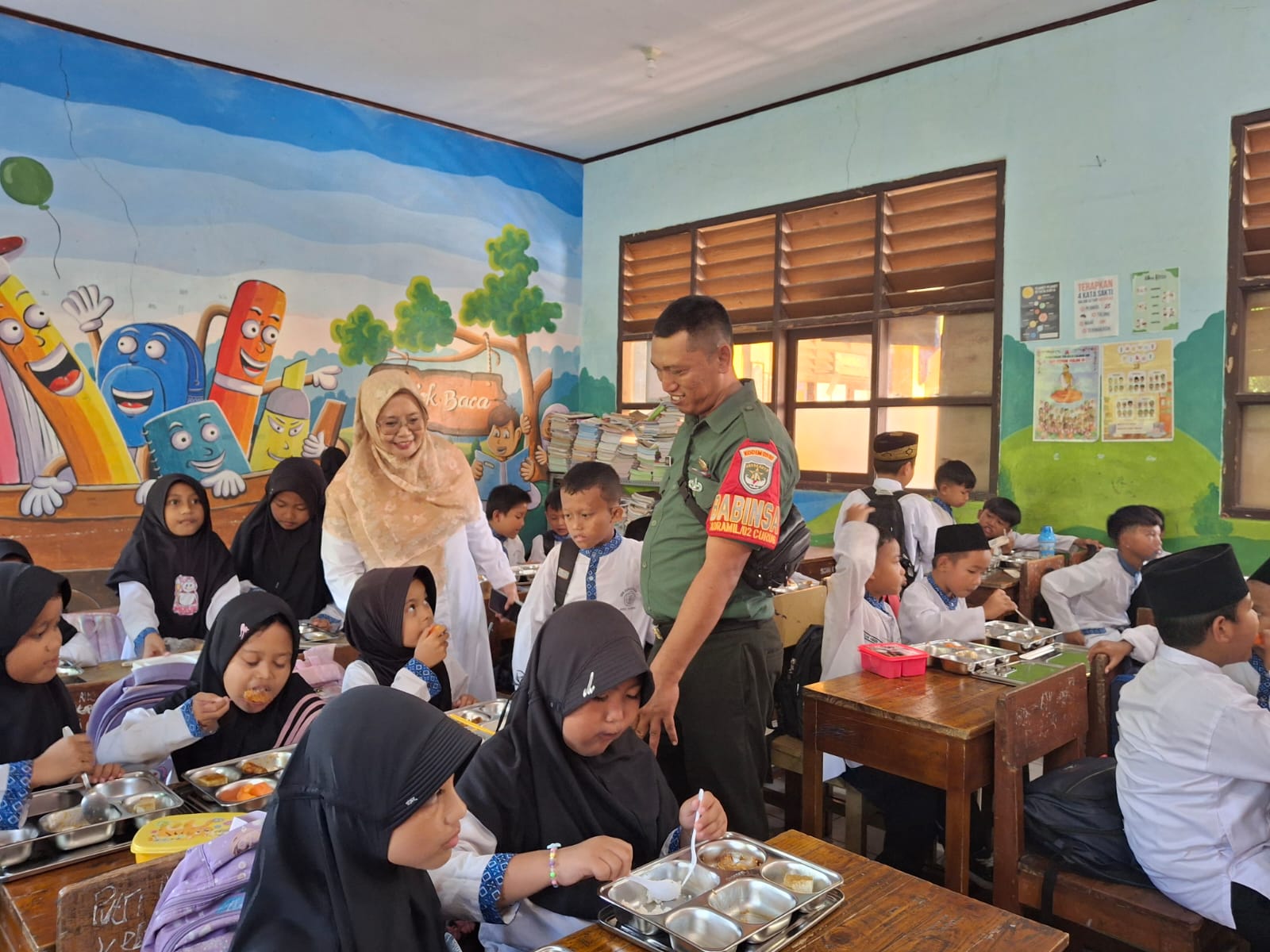 Tigaraksa, Brigadenews.co.id – Upaya mendukung program Pemerintah Makan Bergizi Gratis (MBG) Babinsa Koramil 02 Curug, Kodim 0510/Trs memonitoring langsung pemberian MBG di SDN/MI di wilayah Kelurahan Curug Kulon Kecamatan Curug, Kabupaten Tangerang, Senin (24/02/2025).