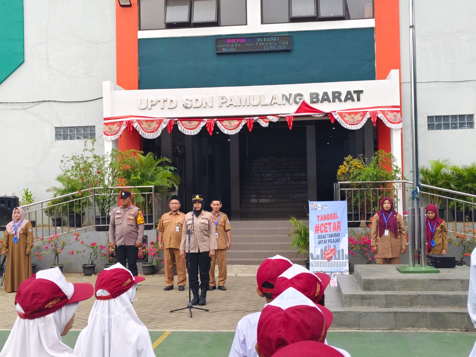 TANGSEL,Brigadenews.co.id- Dalam upaya mencegah kenakalan remaja dan kekerasan di kalangan pelajar, Unit Binmas Polsek Pamulang melaksanakan kegiatan penyuluhan bertajuk Program CETAR (Cegah Tawuran) di SDN Pamulang Barat, Kota Tangerang Selatan. Kegiatan ini berlangsung mulai pukul 08.00 WIB hingga selesai dan diikuti dengan antusias oleh siswa-siswi serta guru di lingkungan sekolah. 11/8