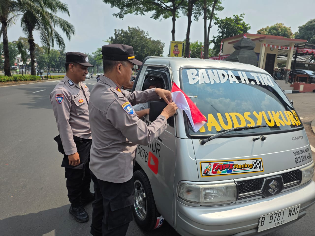 Sebanyak 200 bendera merah putih dibagikan kepada pengguna jalan, yang terdiri dari 100 bendera kecil untuk kendaraan roda dua dan 100 bendera besar untuk kendaraan roda empat. Pengendara yang melintas tampak antusias dan menerima dengan senang hati, turut menunjukkan semangat nasionalisme menjelang perayaan kemerdekaan.