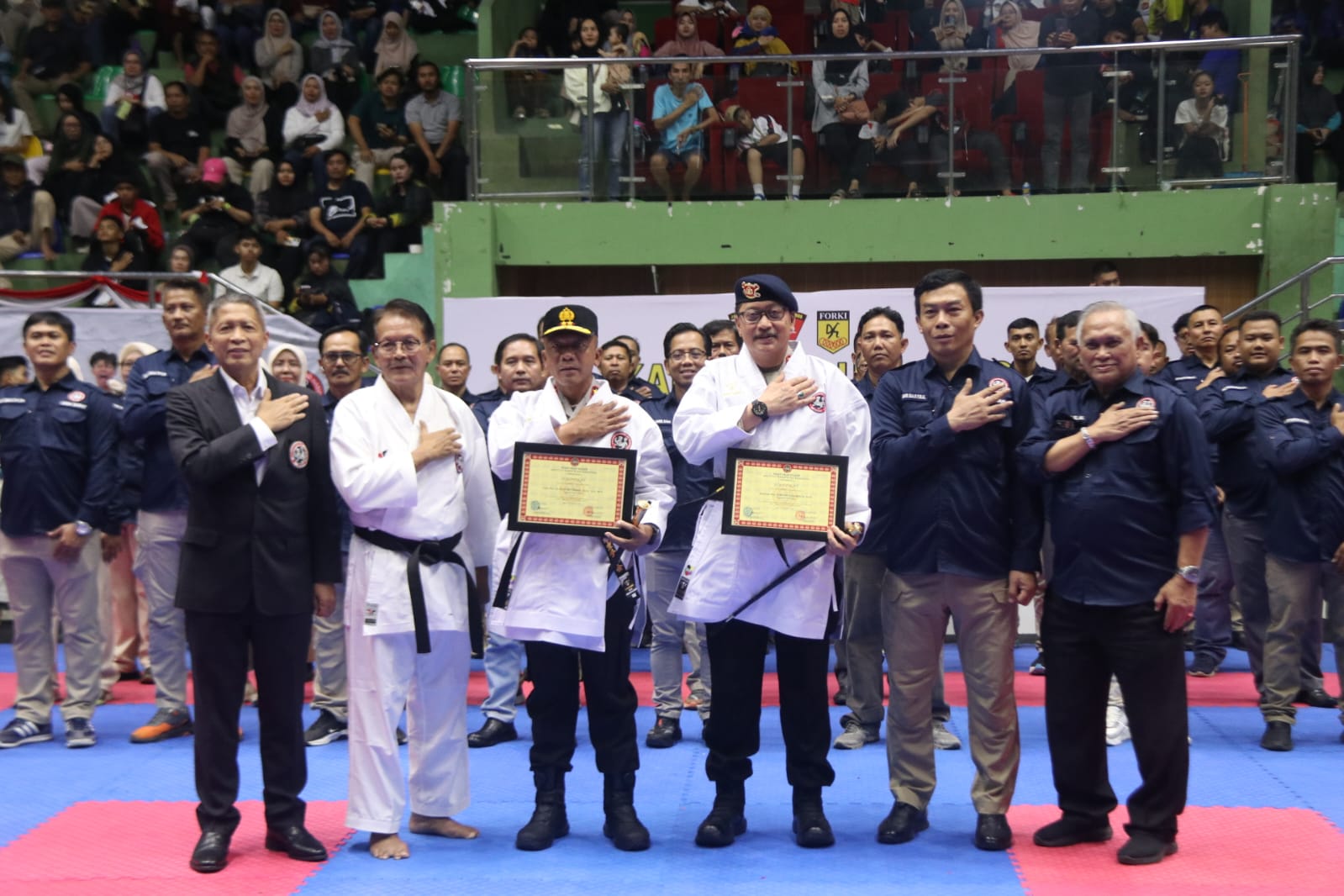 -Penyematan DAN Kehormatan berupa pemakaian Karategi dan Obi (sabuk) oleh Ketua Dewan Guru kepada: